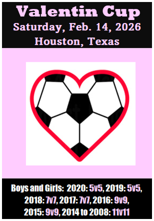 Pre-Memorial FC Houston Cup June 20-21 (new date). For info, click ![]() Winners get Free Uniforms Youth Tournament: U06 to U19 |
