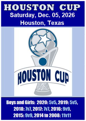 Houston CUP (11v11) June 11-12, 2016 (2 days) For Information, click Youth Divisions: 8v8: 2008, 2007, 2006, 2005. 11v11: 2004, 2003, 2002, 2001, 2000, 1999 and 98-97. |